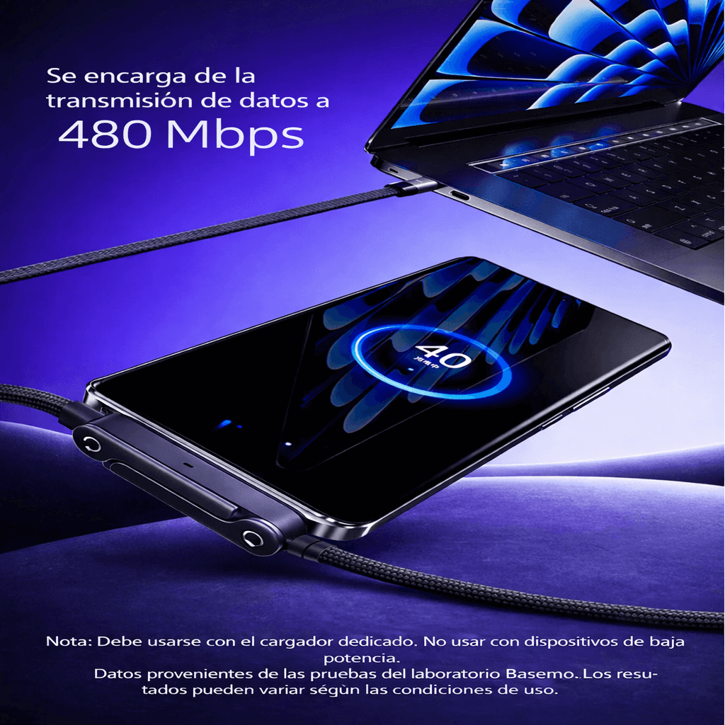 - Carga ultra rápida de hasta 240W : ideal para móviles, tablets y ordenadores portátiles compatibles.